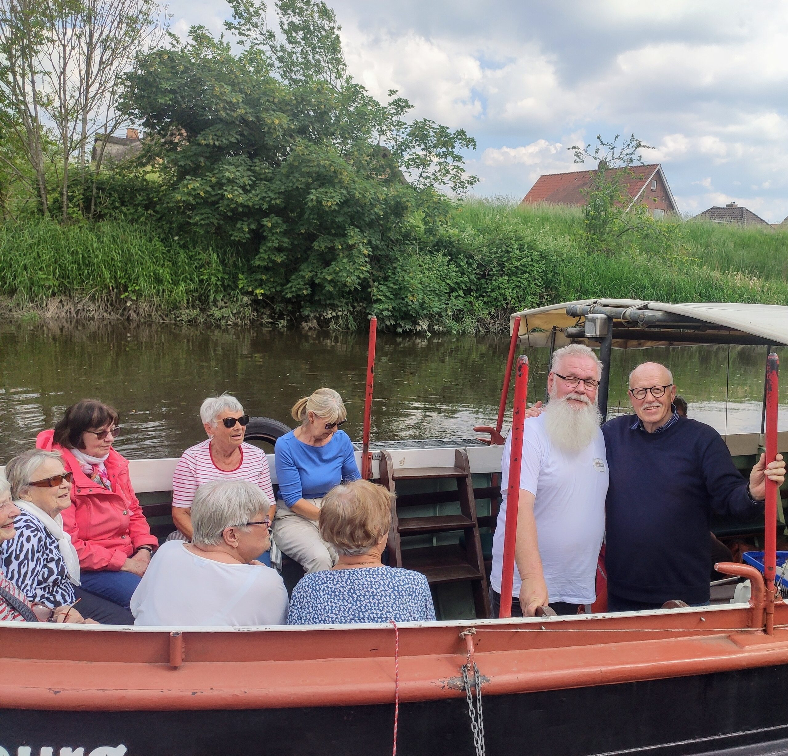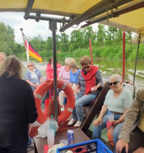 Alle Jahre wieder übt das Wasser eine magische Anziehungskraft auf die „Methusalems“ aus. Dann geht es mit der Barkasse „Elli“ auf eine kleine, aber feine Flussfahrt – Ahoi! Und wieder war es ein herrliches maritimes Erlebnis bei ruhiger See und sonnigem Wetter, garniert mit einigen Schatten spendenden Wolken… In guten Händen bei Käpten Wilfried und seinem Matrosen Reinhard schwelgten die unternehmungslustigen „Oldies“ bei sanfter Brise, Kaffee und ofenfrischem Butterkuchen. Da die „Elli“-Touren tidenabhängig sind, startete die Gruppe dieses Mal vom Hafen in Steinkirchen: Es ging erst Richtung Lühe-Mündung und dann mit auflaufendem Wasser elbaufwärts Richtung Hamburg. Große Pötte gab es zu bestaunen, und auch ein Großsegler unter vollen Segeln bot einen imposanten Anblick. Vielleichtwar es die „Mare Fresia“?  Hahnöversand kam in Sicht, doch kein Schaf war zu sehen, denn der „böse“ Wolf treibt dort zurzeit sein Unwesen. Über dem Airbus-Werk zog ein Großraumflugzeug seine Bahn…wahrscheinlich war es ein „Beluga“. –  Bei Einsetzen der Ebbe auf Höhe Blankenese mit seiner eindrucksvollen Skyline und den einladenden Elbstränden kehrte die „Elli“ und es ging zurück in unseren Fluss, die Lühe. Noch ein klein wenig Lühe-Wasser unter dem Kiel genießen, und dann waren wir auch schon am Anleger in Steinkirchen. Zufrieden und entspannt ging es in PKW-Fahrgemeinschaften zurück nach Horneburg. Na dann, gute alte „Elli“, tschüss bis zum nächsten Mal.