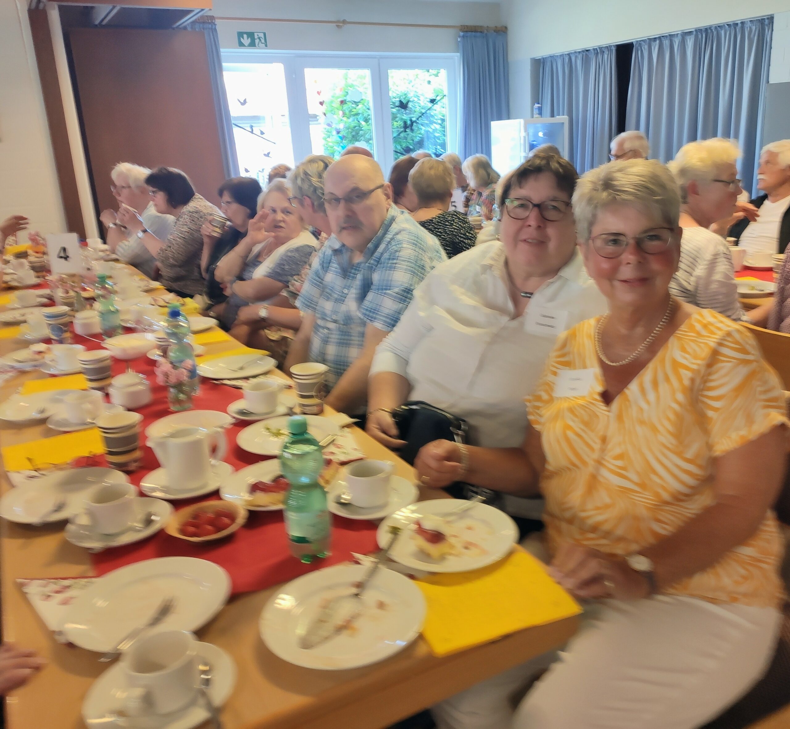 uch die Pastorin eingeladen. Frau Heike Kircher ließ es sich nicht nehmen, nach der Begrüßung durch den 1. Vorsitzenden Peter Hoffmann an die versammelten Seniorinnen und Senioren ebenfalls eine Begrüßungsrede zu halten, die in dem gemeinsamen Loblied an den Sommer: „Geh aus, mein Herz, und suche Freud…“ mündete. Apropos mündete: Kaffee und Erdbeerkuchen mundeten den Anwesenden sehr, und inzwischen stand auch schon unser „Mundschenk“ Josef Wesselmann am Ausschank bereit seines Amtes zu walten. Waren es die sommerlichen Temperaturen oder war es die gehaltvolle Bowle? Es war ein Summen und Brummen im Saal wie in einem Bienenstock, und Peter Runck mit seiner Gitarre musste nach mehreren Versuchen, diesen summenden Haufen zu gemeinsamem Singen zu animieren, schließlich passen. Das war ein fröhliches Geschnatter und Hin- und Her, und erfreulicherweise blieben- trotz sommerlicher Hitze und Bowlengenuss – alle standfest auf ihren Beinen und kamen unbeschadet nach Hause… „Eine tolle Idee war das, liebe Silvia, lieber Peter! Das machen wir im nächsten Jahr ganz sicher wieder“ wünscht sich- auch im Namen der Teilnehmenden: Astrid Rehberg