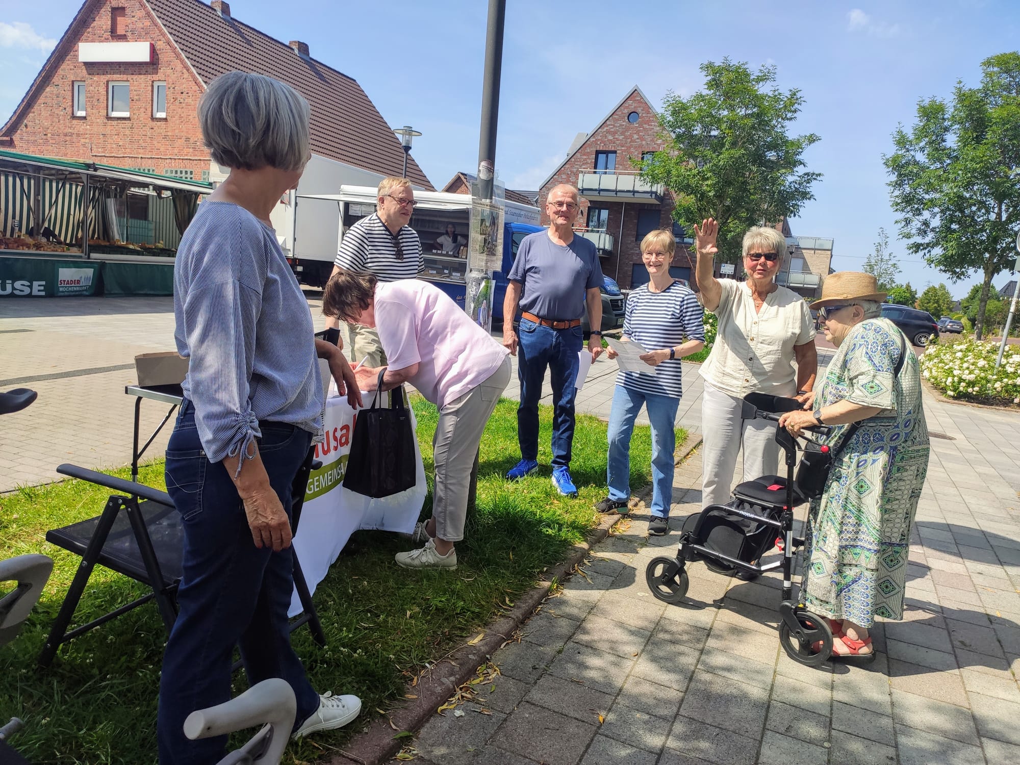 Zu einer besonderen Aktion hatte der Seniorenverein „Methusalem e. V.“ am Freitag aufgerufen: ein Stand auf dem Wochenmarkt, um die Bevölkerung zu sensibilisieren. Um was geht es? „Es gibt in Horneburg zahlreiche Stolperfallen auf den Gehwegen, die Bürgersteige sind gerade in älteren Baugebieten an den Kreuzungen nicht abgesenkt.“ Teilweise wachsen Hecken bis auf die Mitte der Gehwege. Junge Familien mit Kinderwagen müssen auf die Straße ausweichen und versuchen, die großen Höhenunterschiede zu überwinden. Gerade für Ältere mit Rollator ist das ein großes Problem. Die Bordsteine z.B. an der Hermannstraße in Höhe des Spielplatzes sind 15 cm hoch. Oder auch in der Schanzenstraße und den angrenzenden Straßen sind tlw. 13 cm hohe Bordsteine keine Seltenheit. Hier will der Verein aktiv werden und Ärgernisse sammeln, um sie anschließend an die Verwaltung und Politik zu überreichen. Abhilfe ist dringend notwendig.
