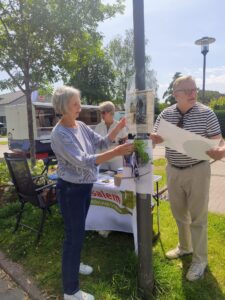 Zahlreiche Besucher des Wochenmarktes sahen das ähnlich und wollen Schäden auflisten und in die Box geben, die im Mehrgenerationenhaus ausgestellt ist. Aber auch die Vorstandsmitglieder nehmen Meldungen entgegen. So seien am Vordamm oder auch in den Kalkwiesen etliche Probleme vorhanden. Der Vorstand wird diese Aktion am Freitag, 27.06. ab 15.00 Uhr wiederholen.